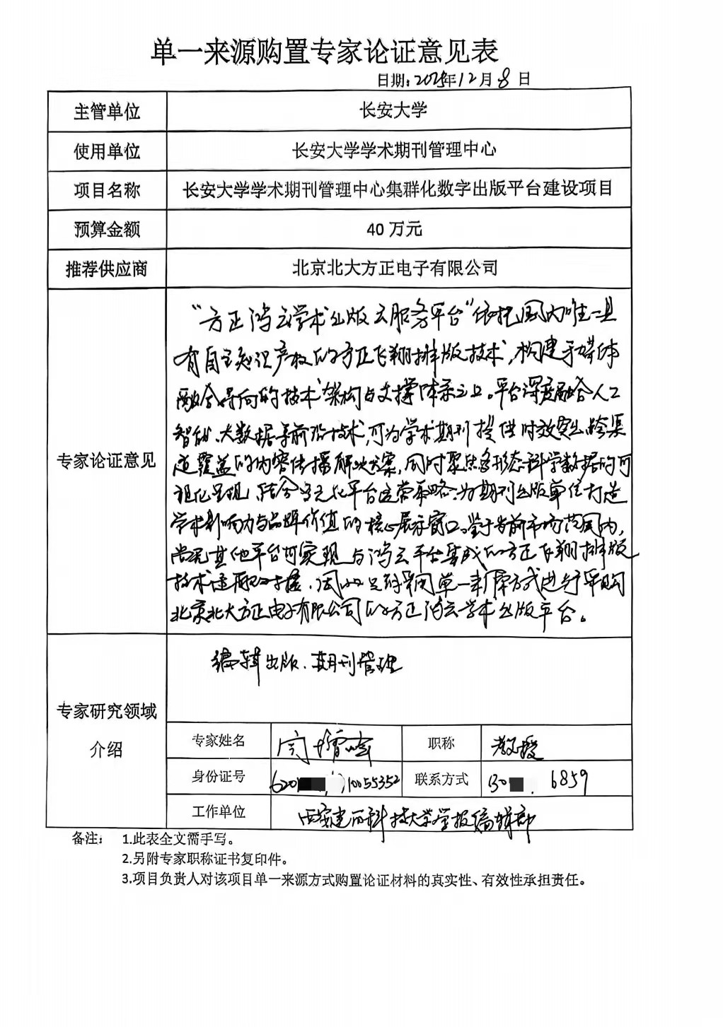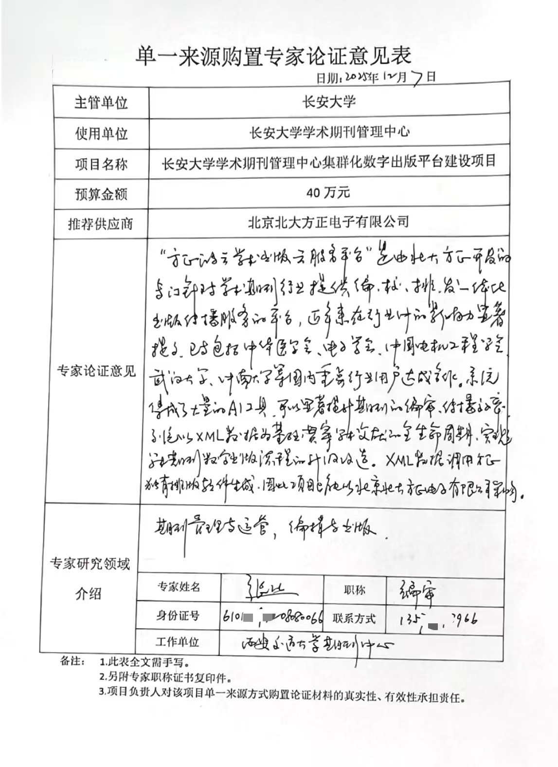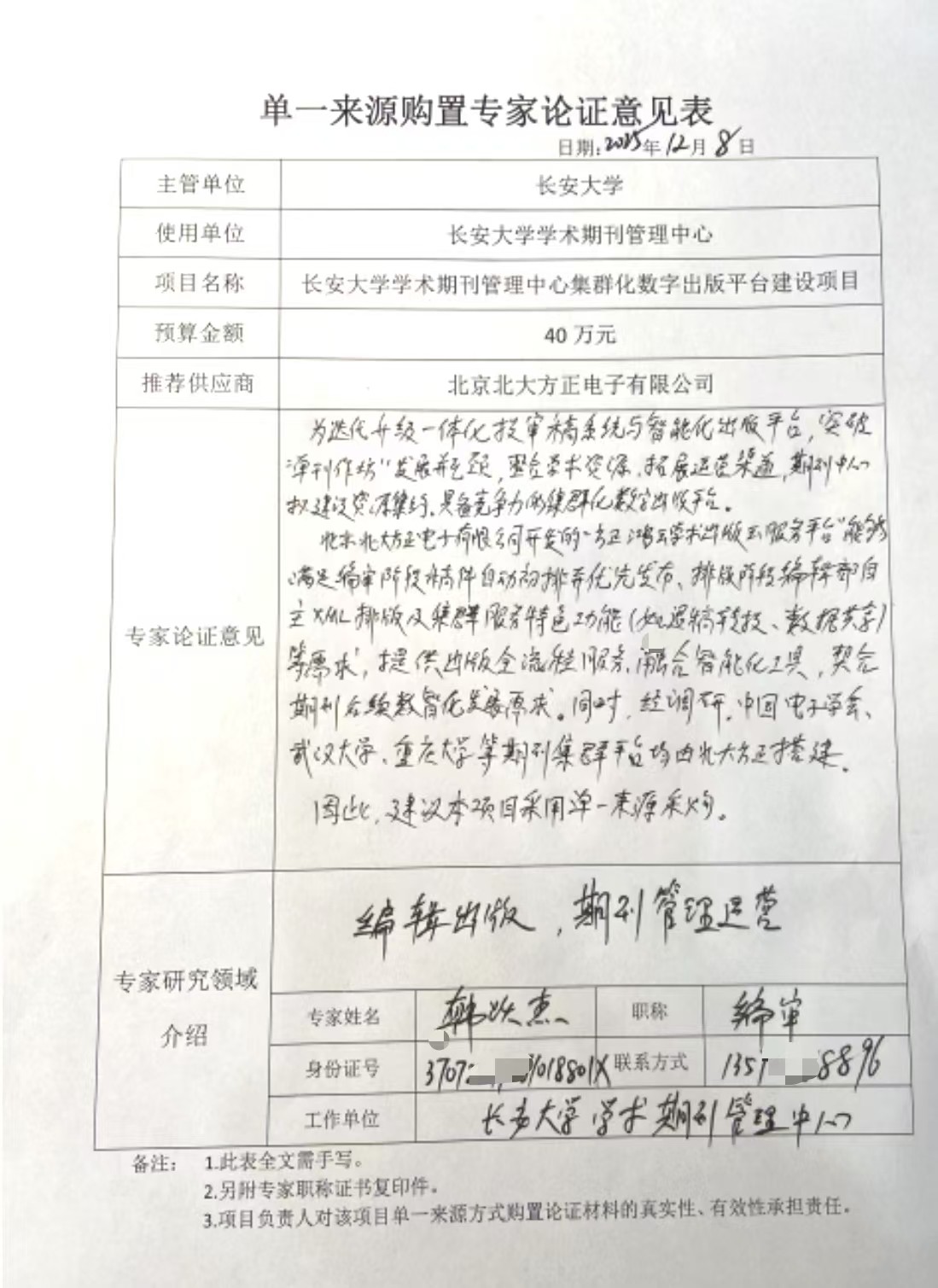 长安大学学术期刊管理中心集群化数字出版平台建设项目单一来源采购公示